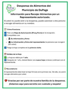 Si usted no puede venir a la despensa, puede autorizar a otra persona a recoger alimentos en su nombre.